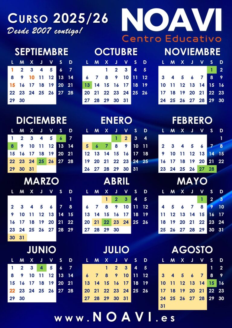 Nuestro calendario de clases está basado en el CALENDARIO ESCOLAR SEVILLA 2025-2026